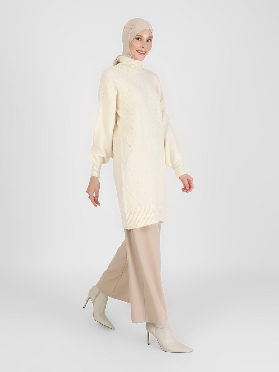 Refka Ekru Boğazlı Yaka Triko Tunik