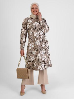 ZENANE Vizon Büyük Beden Çiçek Desenli Tunik