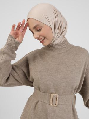 Benin Vizon Dik Yaka Kemerli Triko Tunik