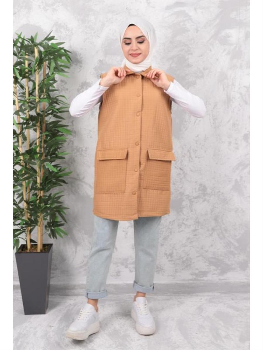 Bestenur Vizon Mensia Düğmeli Çift Cepli Kapitone Yelek