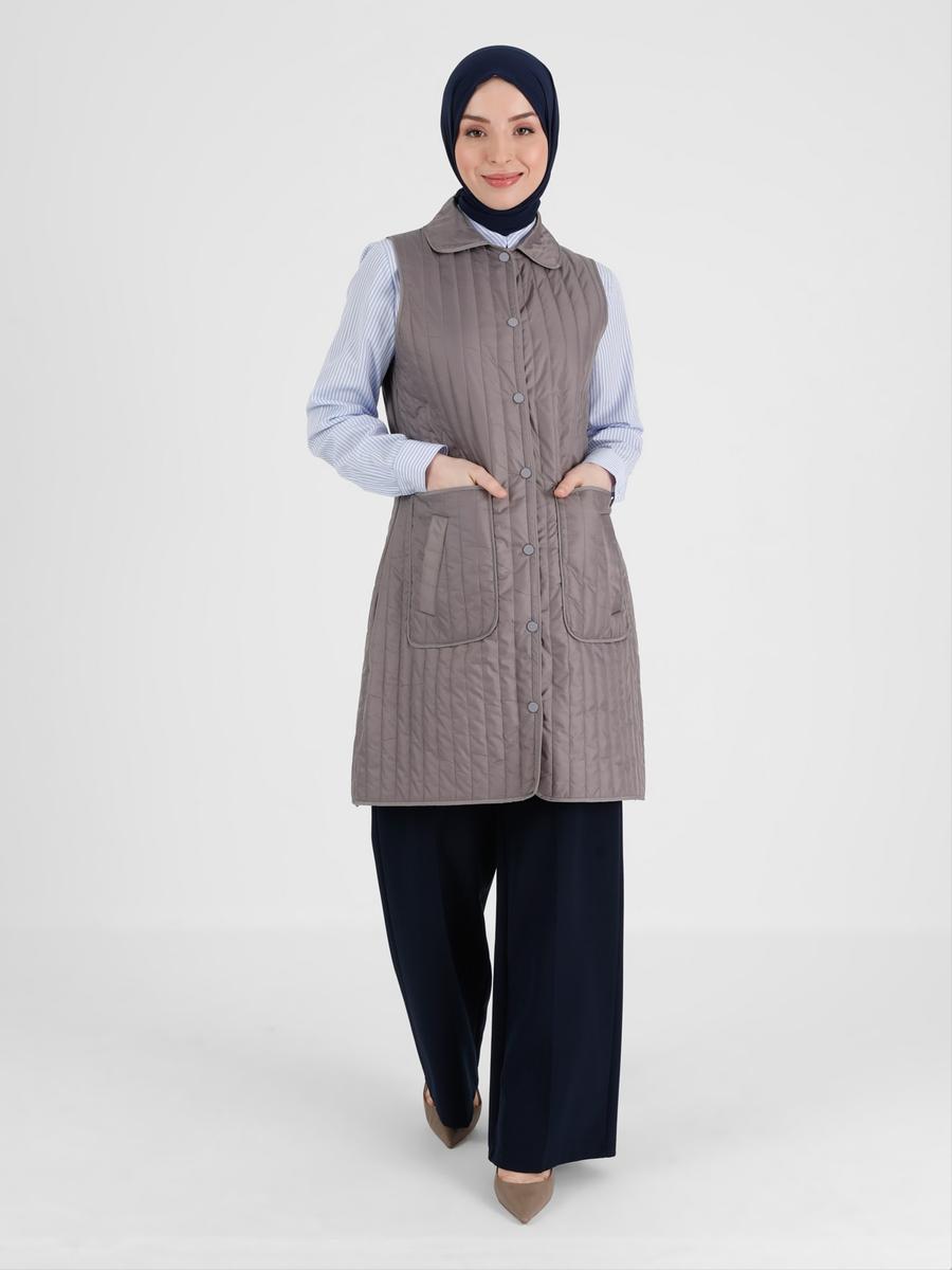 Olcay Gri Çıtçıtlı Yelek