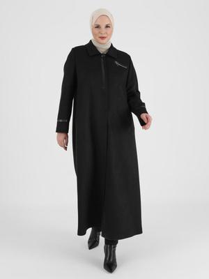 Olcay Siyah Boydan Gizli Düğmeli Pardesü