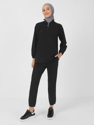 Refka Siyah Tunik & Pantolon İkili Eşofman Takım