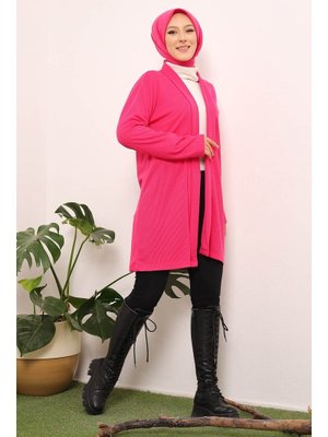 İmaj Butik Fuşya Modest Önü Duble Fitilli Bürümcük Hırka