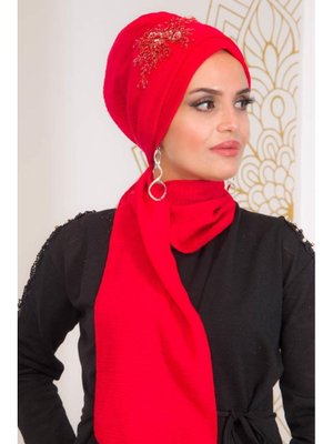 AİŞE TESETTÜR Nakışlı Atkılı Abiye Bone Kırmızı