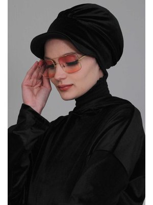 Aisha`s Design Siyah Siperliklik Kadife Bone
