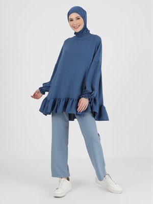 Refka Koyu İndigo Volan Detaylı Aerobin Tunik