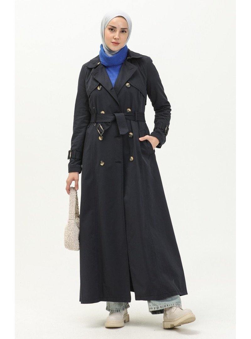 Vivezza Lacivert Kruvaze Ön Arka Pelerin Trençkot Pardesü