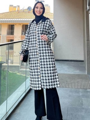 Tofisa Beyaz Kapüşonlu Desenli Kap