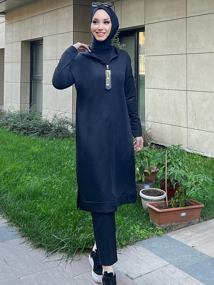 Tofisa Siyah Kapüşonlu Fermuarlı Kap