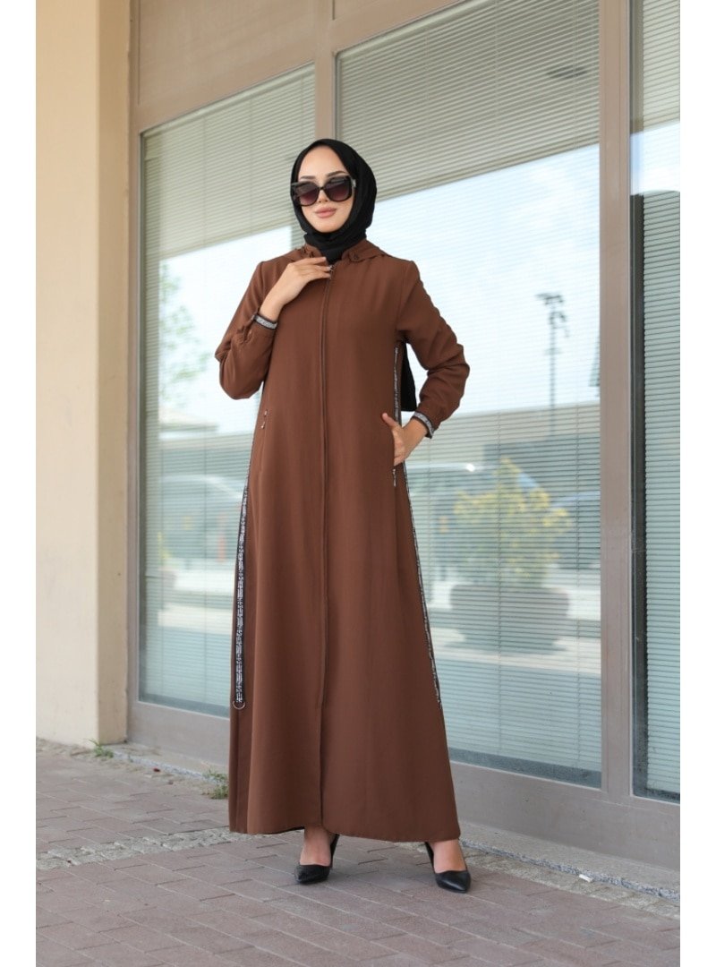 Bestenur Taba Feray Şerit Detaylı Kapüşonlu Çift Cepli Ferace
