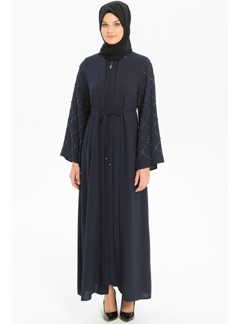 Beyza Lacivert Taş İşlemeli Beli Bağıcıklı Ferace