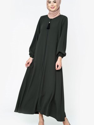 Beyza Yeşil Fermuarlı Reglan Kol Ferace