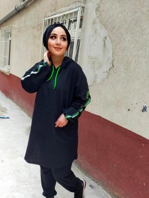 Cng Moda Siyah Yeşil Fosforlu Eşofman Takım