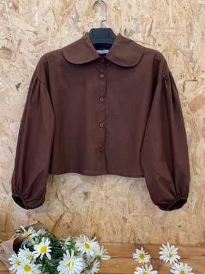 Ceylan Otantik Kahverengi Balon Kol Crop Gömlek