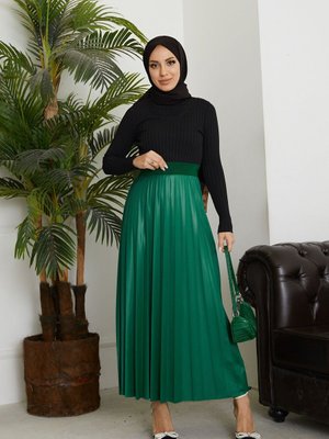 Spesniks Mint Bel Lastikli Piliseli Uzun Etek