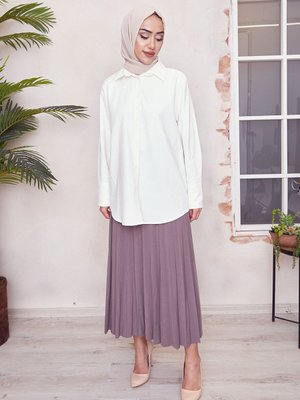 Spesniks Vizon Pliseli Beli Lastikli Uzun Etek