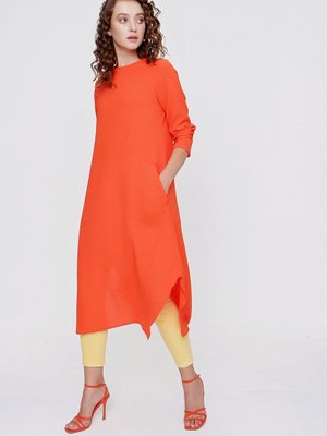 butikburuc Orange Yan Yırtmaçlı Cepli Tunik