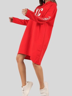 butikburuc Kırmızı Yazı Baskılı Kapüşonlu Tunik