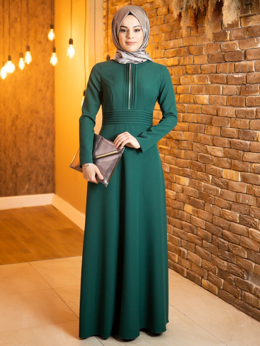 Mimelisa Zümrüt Yeşili Vera Nervülü Abiye Elbise