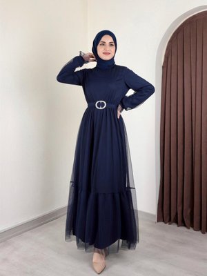 Ensa Tesettür Melisa Tül Lacivert Abiye Elbise