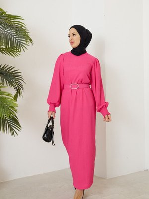 Spesniks Fuşya Kemerli Elbise