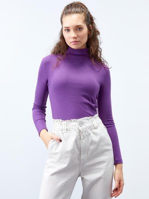 TOMMYLIFE Mor Tommy Life Balıkçı Yaka Dar Kalıp Uzun Kol Triko Body Kazak