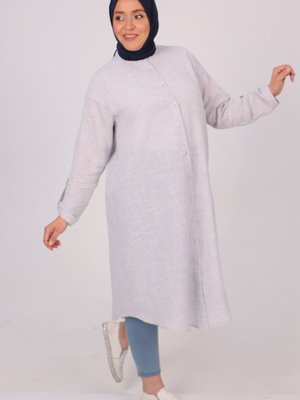 Moda Rosa Gri Büyük Beden Etamin Keten Mevlana Gömlek