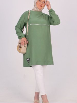 Moda Rosa Yeşil Büyük Beden Ara Biyeli Mucize Tunik