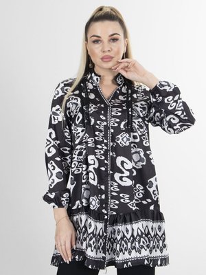 Ardanewline Siyah Etek Ucun Büzgülü Saten Tunik