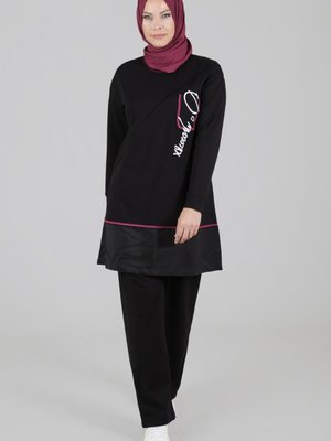 Moda Rosa Siyah/pembe Büyük Beden Pantolonlu Takım