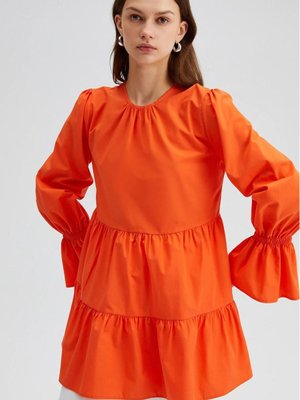 Touche Turuncu Sıfır Yaka Fırfırlı Tunik