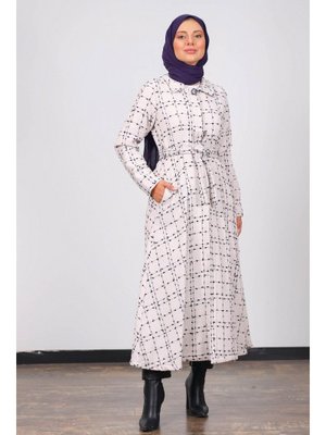 Meqlife Bej Şanel Kumaş Kuşaklı Küçük Beden Kaban