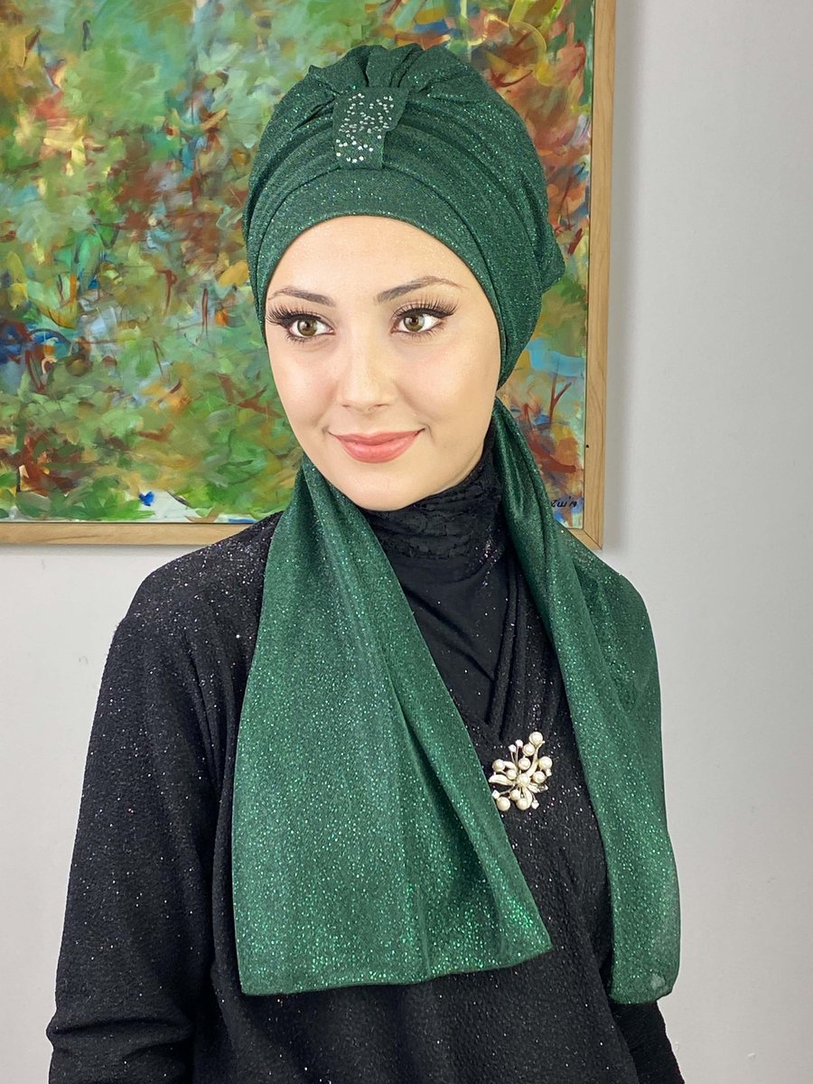 BUTİK AMBAR Koyu Zümrüt Hürrem Tek Biritli Simli Atkılı Bone