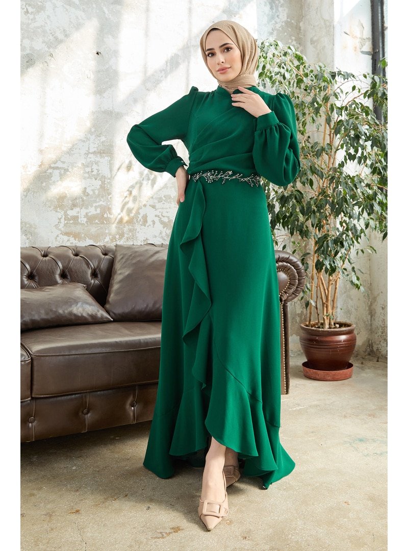 Vavinor Zümrüt Eteği Volanlı Abiye Elbise