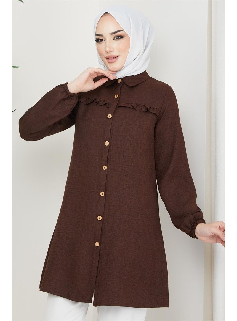Hafsa Mina Kahverengi Fırfır Detaylı Tunik