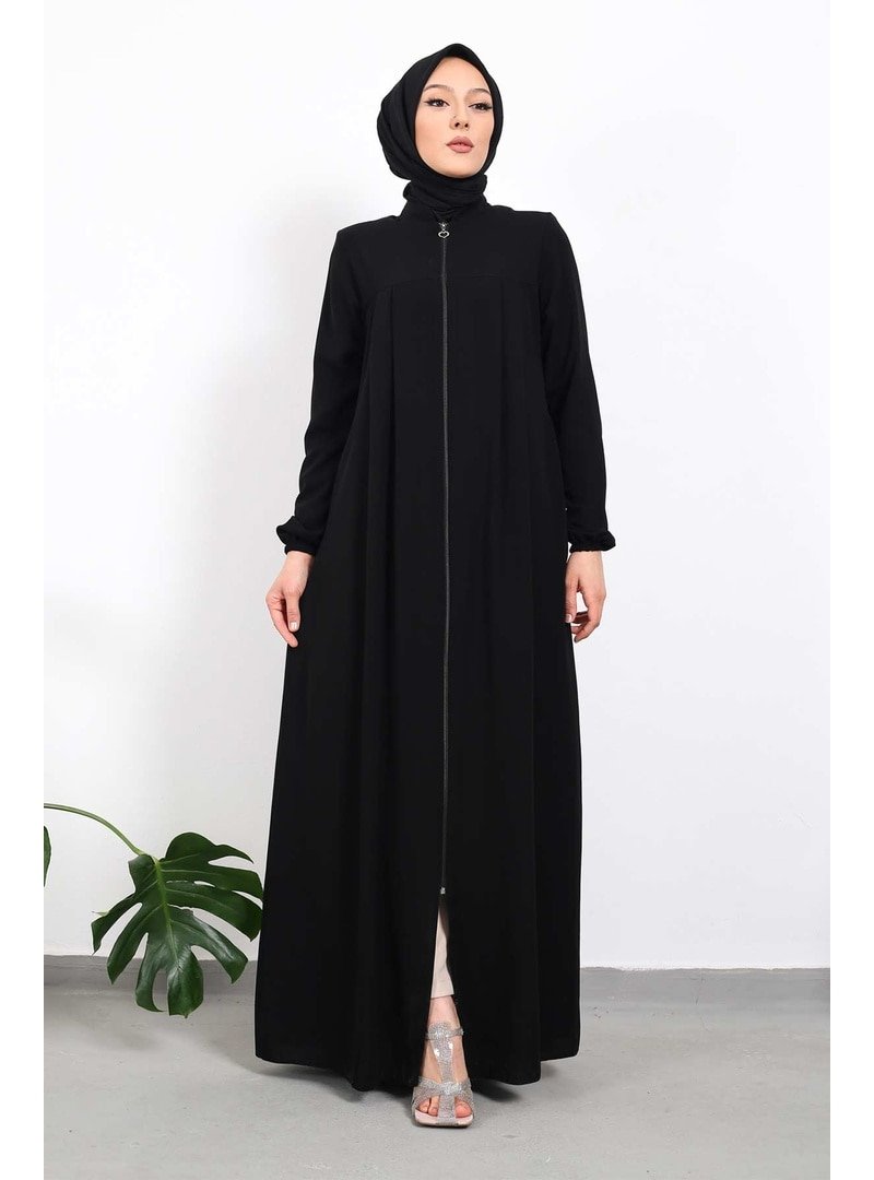 İmaj Butik Siyah Fermuarlı Kol Lastikli Ferace
