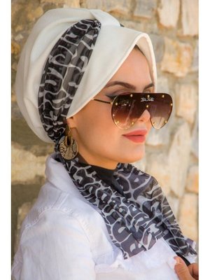 AİŞE TESETTÜR Şapkalı Bone Beyaz Siyah