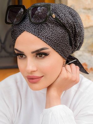 AİŞE TESETTÜR Çapraz Bone Siyah Puantiyeli