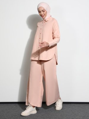 Refka Koyu Pembe Tunik & Pantolon İkili Poplin Takım