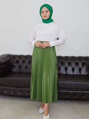 Spesniks Lime Yeşil Lakeli Piliseli Uzun Etek