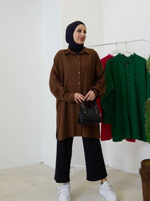 Spesniks Kahve Yırtmaç Detay Cepli Tunik