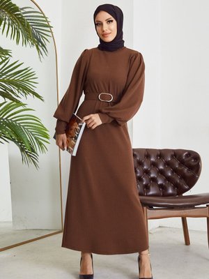 Spesniks Kahve Kemerli Saç Örgü Elbise