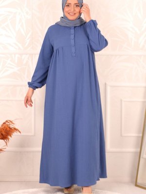 Moda Rosa İndigo Büyük Beden Önü Büzgülü Bürümcük Elbise