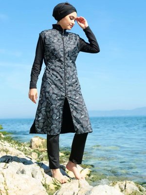 Starinci Mayo Lacivert Yaprak Desenler Tam Kapalı Mayo