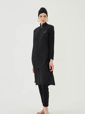 Starinci Mayo Siyah Büyük Beden Düz 4lü Set Tam Kapalı Mayo