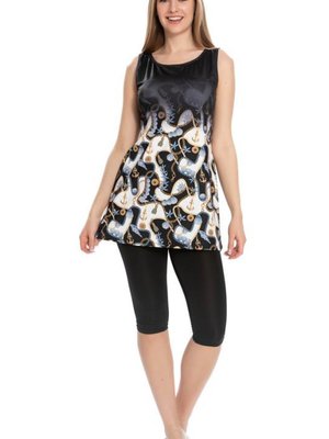 Starinci Mayo Siyah Alt Detay Zincir Desenli Mayo