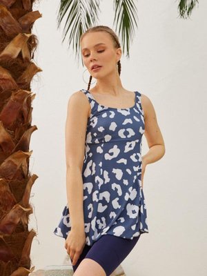 Starinci Mayo Lacivert Taytlı Elbiseli Beyaz Taş Desenli Mayo