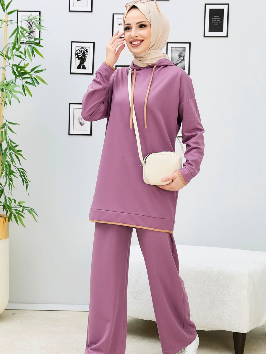 Tofisa Lila Kapüşonlu Tunik & Pantolon İkili Takım