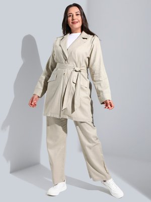 Alia Açık Vizon Büyük Beden Keten Ceket & Pantolon İkili Takım